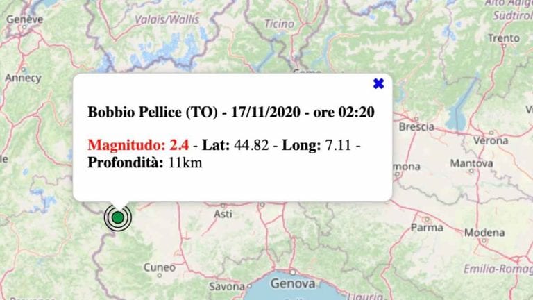 Terremoto In Piemonte Oggi Martedi 17 Novembre 2020 Scossa M 2 4 Provincia Di Torino Dati Ingv